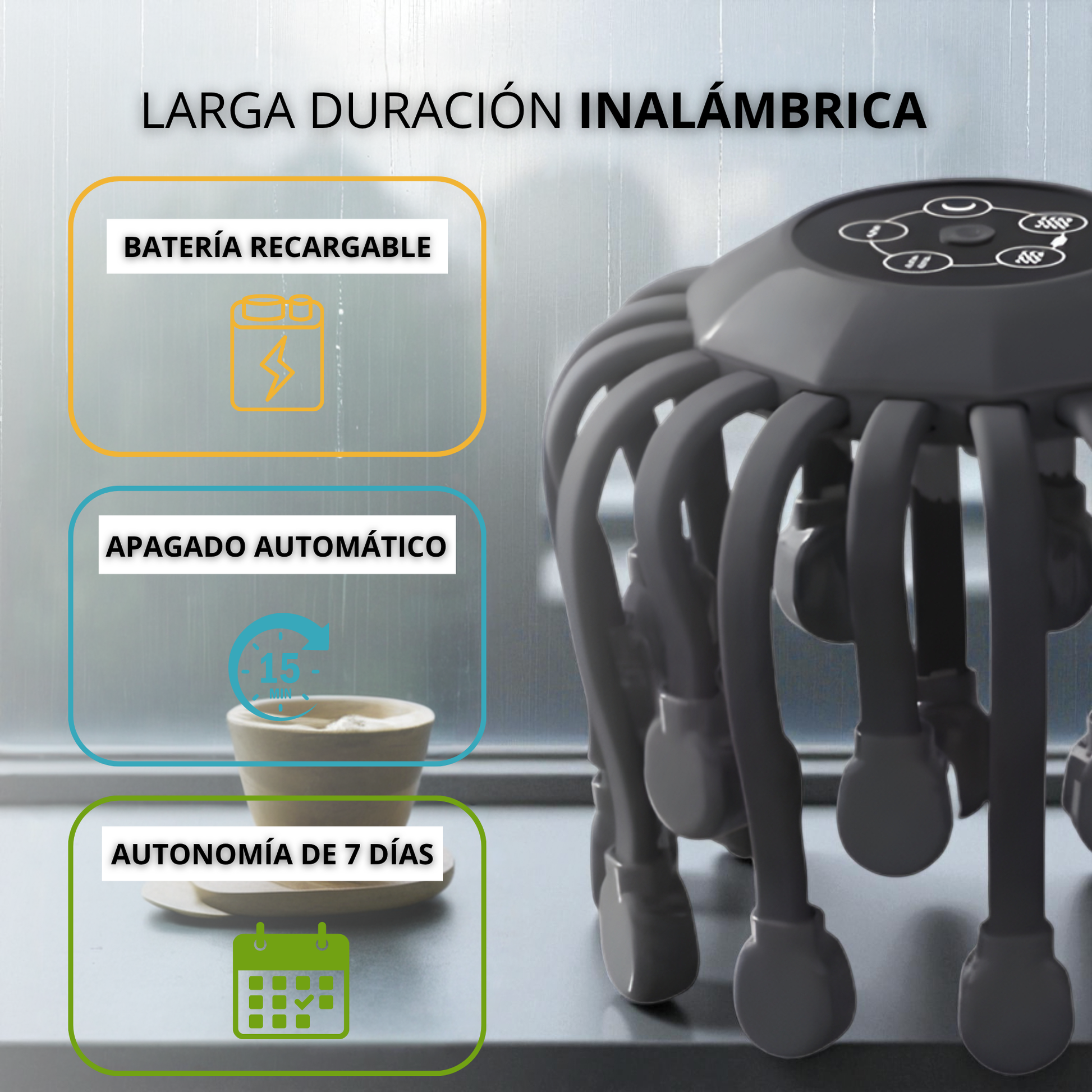 Técnica avanzada de masaje: con su técnica avanzada, este innovador compañero masajeará suavemente su cabeza, ofreciéndole una experiencia única de relajación. Cada movimiento está diseñado para aliviar la fatiga, reducir el estrés y mejorar la calidad de su sueño, todo sin esfuerzo de su parte.